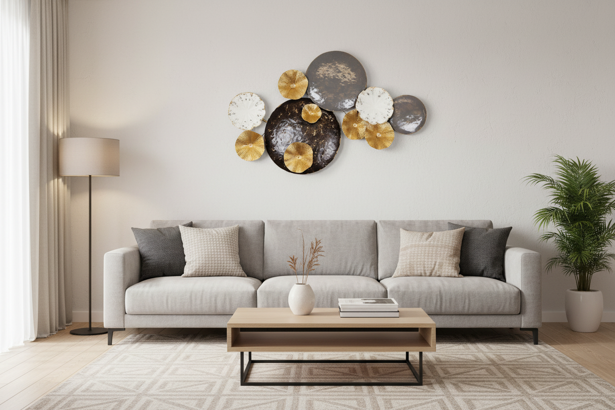 DEKOR MURI METAL  , WHITE - BLACK - GREY - GOLD 96x55cm/ CODE  755-10067