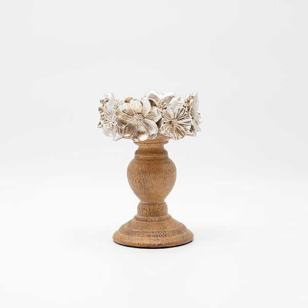 SHANDAN FLOWERS POLYRESIN-WOOD NATURAL-SILVER 12.5x12.5x18.5cm/