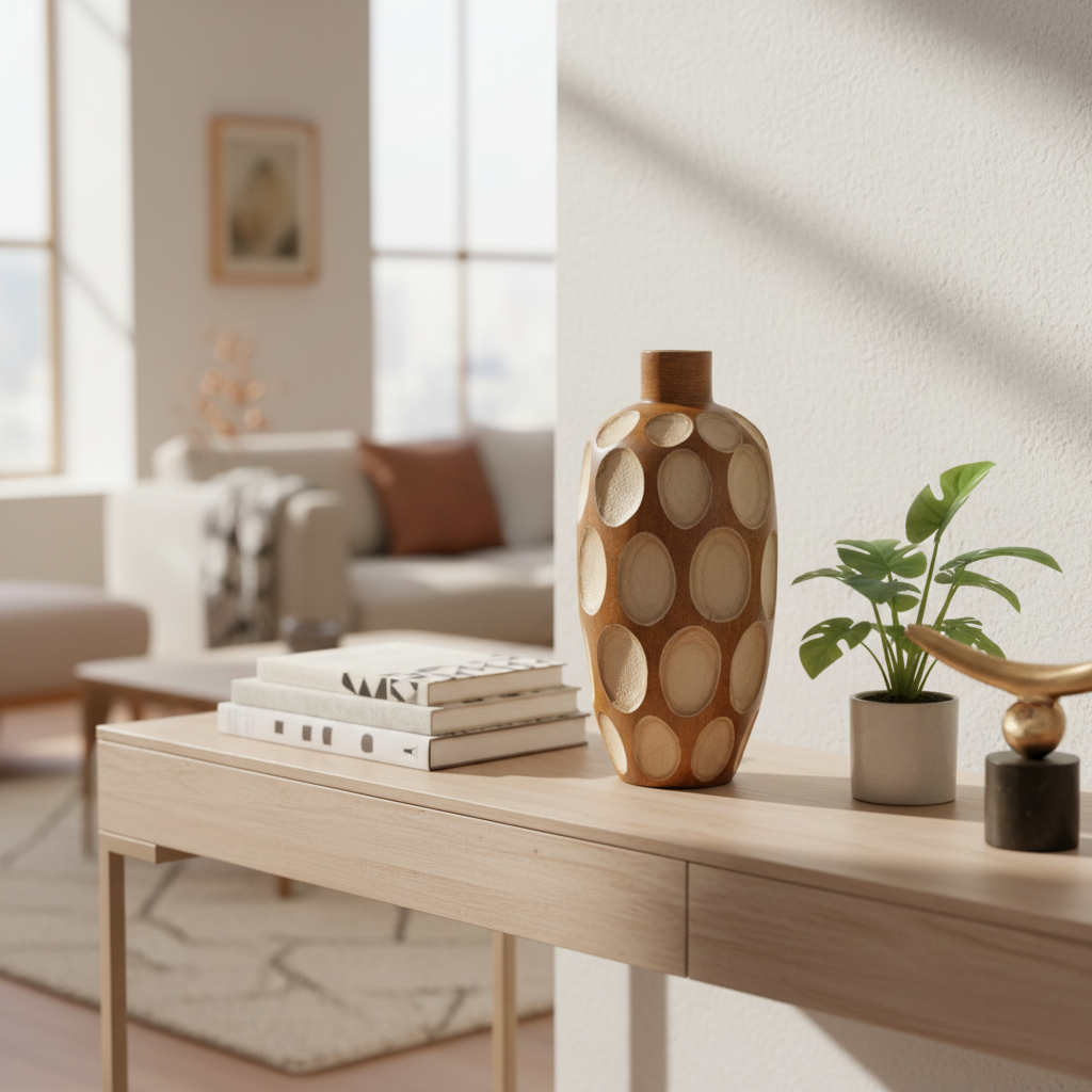 VAZO VASE WOOD BROWN-BEIGE 17x37cm CODE   819-00408