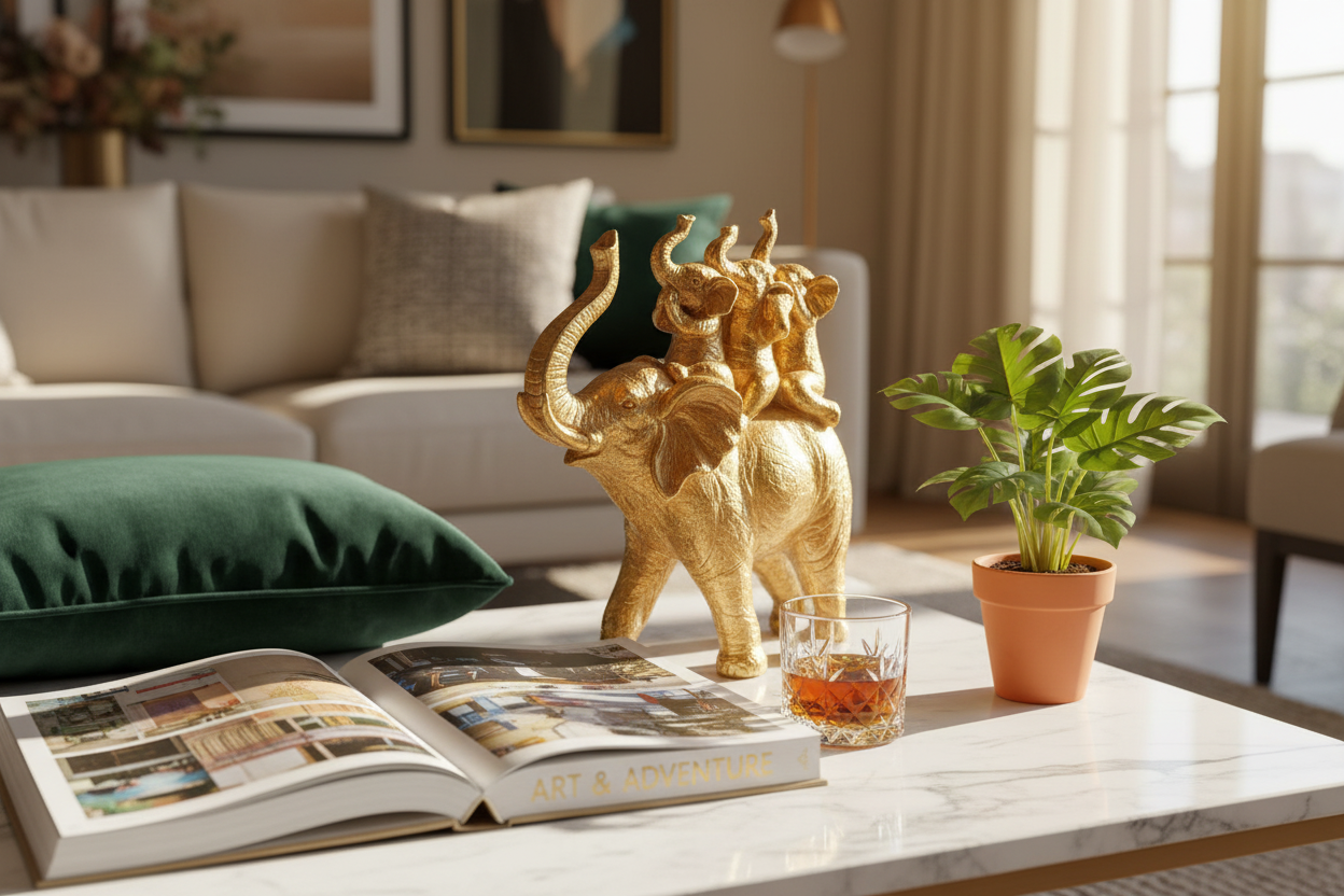DEKOR ELEFANT WITH BABY GOLD-GREY 23.5x9x26cm/