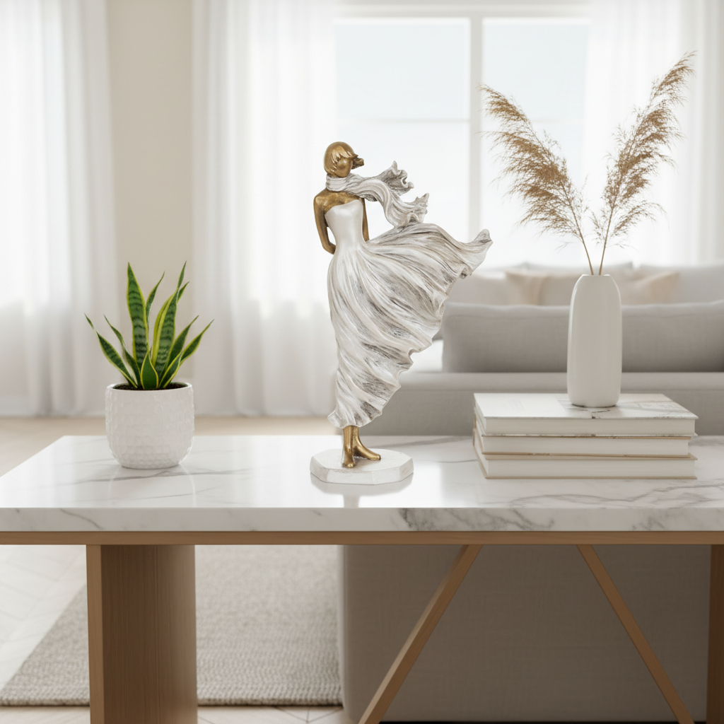 DECORATIVE SCULPTURE FEMALE  GOLD-SILVER 15.5x7x25cm