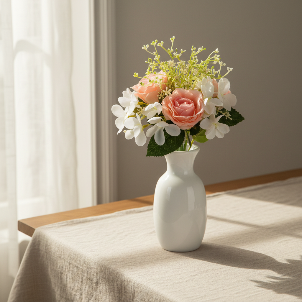 | ROSE - APPLE FLOWER BOUQUET 7BRANCHES WHITE - PINK 31cm |