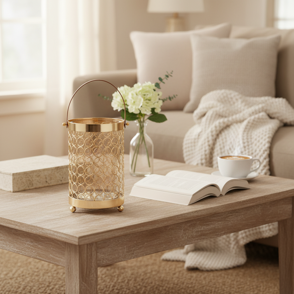 MBAJTESE QIRIU  LANTERN  METAL GOLD 14x17cm CODE  819-00253