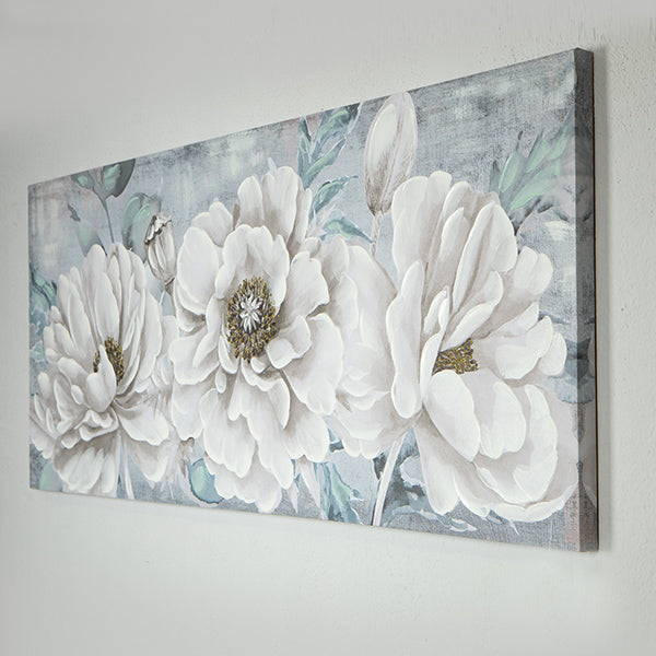 PANORAME CANVAS FLOWERS GOLD - WHITE - BLUE 135x3x55cm/