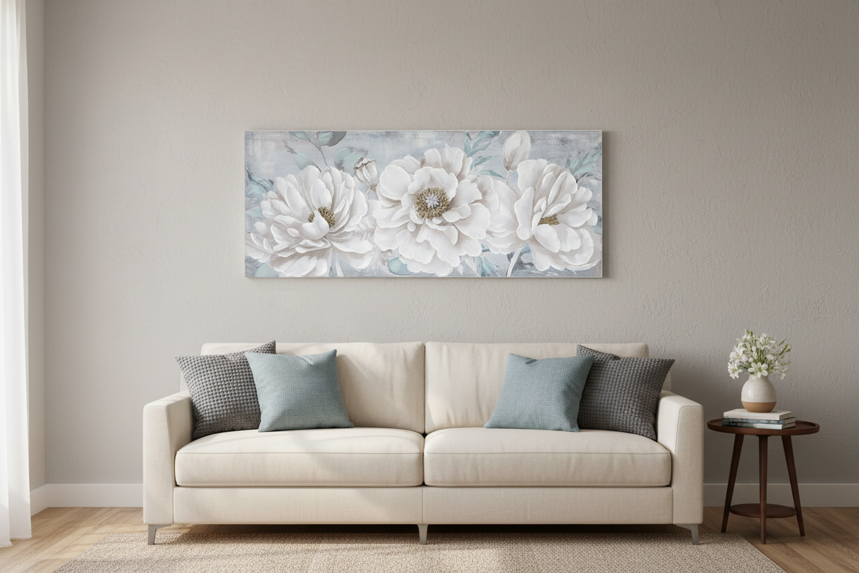 Krijo një llogariPANORAME CANVAS FLOWERS GOLD - WHITE - BLUE 135x3x55cm/