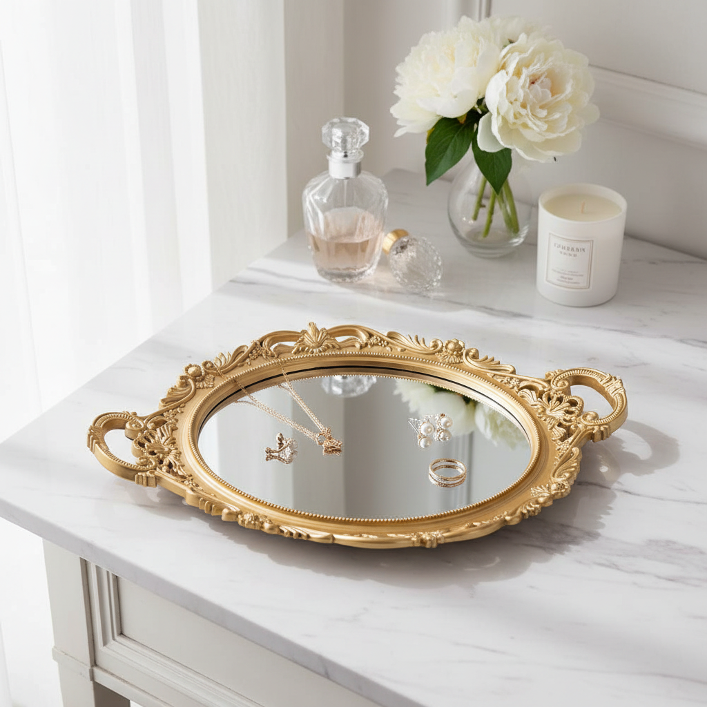 | TRAY WITH MIRROR PLASTIC GOLD 38x24x2cm |