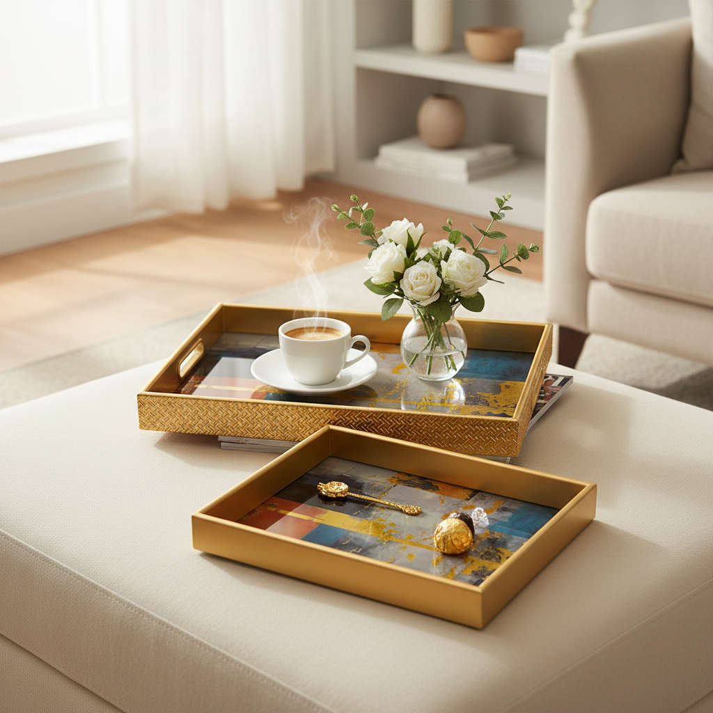 | TRAY PLASTIC GOLD RED GREEN 40x30x4.5cm / |