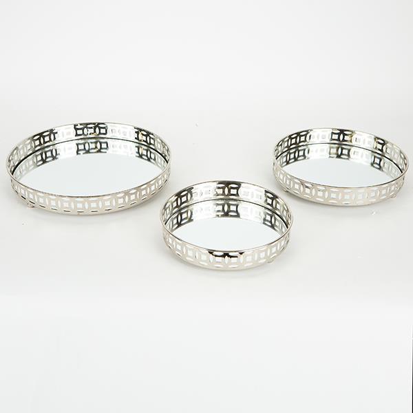 S/3 TRAY METAL WITH MIRROR SILVER 25x4cm / 21x4cm / 17x4cm