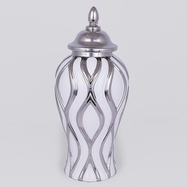 VAZO, CERAMIC WHITE - SILVER 18.8x18.8x42.6cm / CODE 752-20285