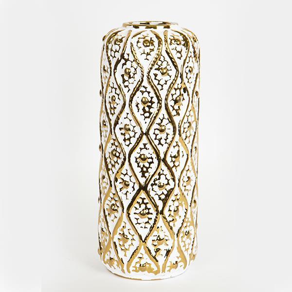 VAZO, CERAMIC WHITE - GOLD 15x15x37cm /